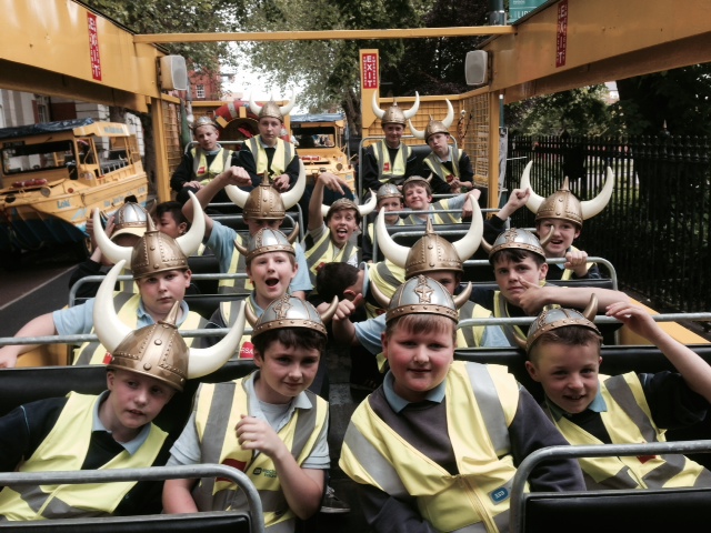 The boys in 3rd, 4th, 5th and 6th classes went on their school tour last Friday to Dublin. It was an early start with the bus leaving at 650 to be in Colbert station for the 755 train. We got to Dublin and walked to the Wax Museum where the boys saw many interesting characters such as Oscar Wilde, Samuel Becket, Eamon De Valera, Mary McAleese, Patrick Hillery, The Simpsons and lots lots more. After this we had the big surprise of the tour which was ‘Dublinia’ which is a viking tour. They boys loved this tour despite feeling very very tired. We then walked to St. Patricks Cathedral and had our lunch in the adjoining park and recharged our batteries. This was followed by the amazing ‘Viking Splash Tour’. This was a bus tour which also went into the grand canal. We then headed back to Heuston Station for the 6pm train. We had just enough time to have a quick ice cream stop before getting the train home. It was a long day but it was a most enjoyable day made ever more special by the co-operation of all the boys. We had so much fun and they were an absolute pleasure to take to Dublin. Well done everyone. Feel free to tell us about what you enjoyed about the day boys.